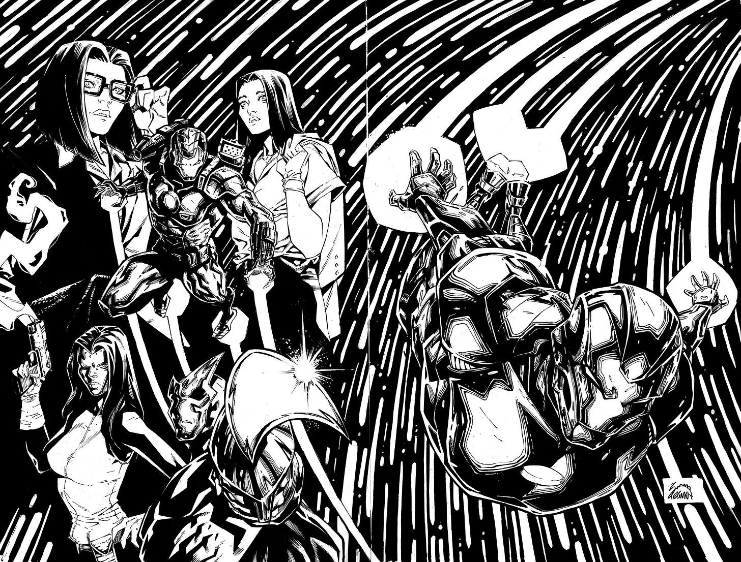 I’m also the series cover artist for Iron Man! Here’s a wraparound I did for issue 1 that, quite frankly, I crushed.